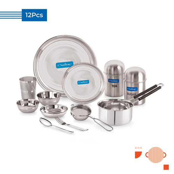Neelam Bachelor Dine & Cook 12 Pcs Stainless Steel Dinner Set (Laser Etching)