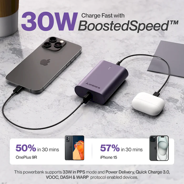 Ambrane Powerlit 30 10000mAh Mini 33w Pocket (Power-Bank)