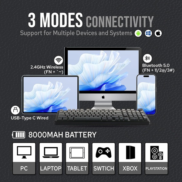 • Wired/2.4G mode: Windows ALL operating system WIN XP, WIN7,WIN8, WIN10 ( drivers may be required in Win95, Win98 systems).