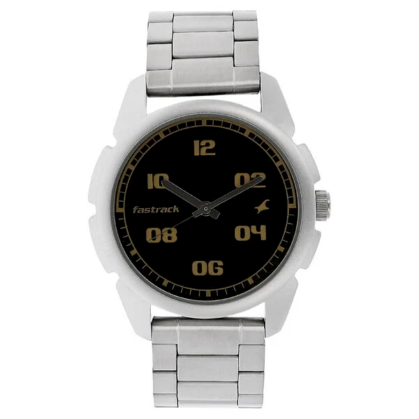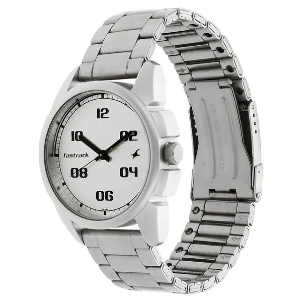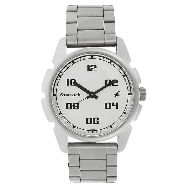 Fastrack Quartz Analog Silver Dial Stainless Steel Strap Watch for Guys
