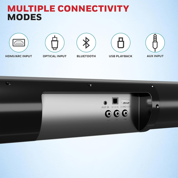 • 5 Play Modes: Enjoy distortion free content through Bluetooth, 3.5mm AUX, USB, Optical Input & HDMI/ARC