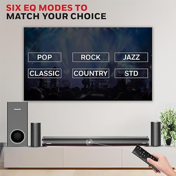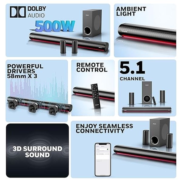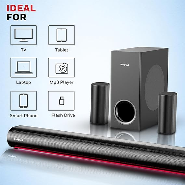 Honeywell Newly Launched Trueno U7000 Dolby Audio Soundbar 500w, 5.1Ch Surround Sound Home Theatre, Deep Bass Subwoofer, 2 Satellite Speakers, 6 EQ Modes, BT v5.3, AUX, USB, Optical Input, & HDMI/ARC