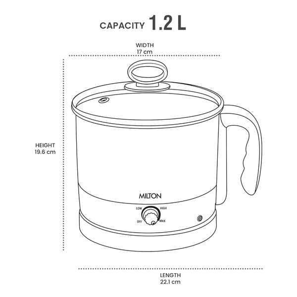 - Color: Silver; Material: Stainless Steel Body; Glass Lid; Package Content: 1 – Piece Go Electro Cooker (1.2 Litres); Accessories: Egg Tray, SS Stand, Steaming/Boiling Bowl.Â