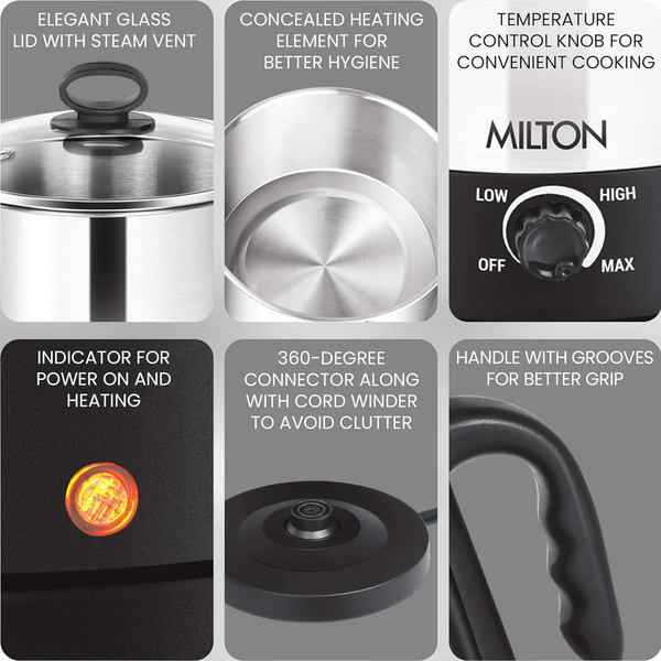 - This Electric Cooker have built-in safety features like automatic cut-off. It has temperature control knob and indicator for power on and heating for convenient cooking.