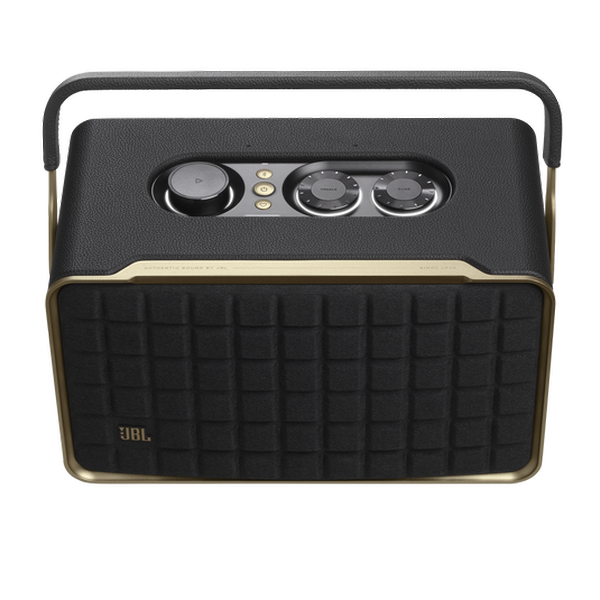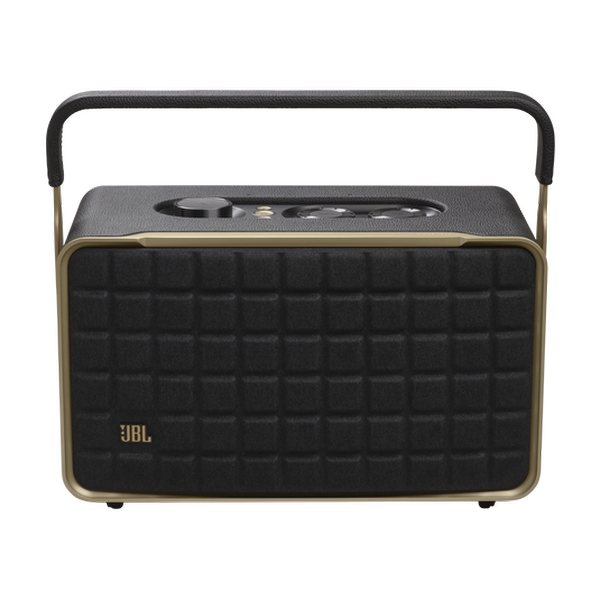 - Distinctive style: This retro-style, portable speaker easily fits everywhere in the house thanks to its sleek, compact design, featuring a cast-iron handle, custom leather-like enclosure and Quadrex grille