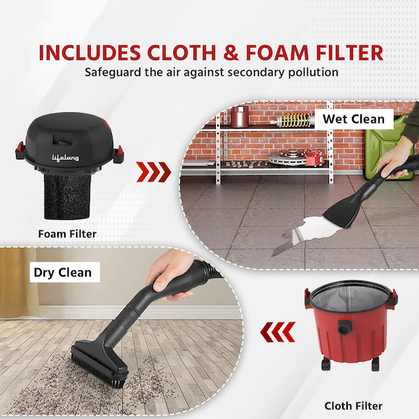 Lifelong 1000-Watt, 10-Liter Wet and Dry Vacuum Cleaner, with Blower Function High