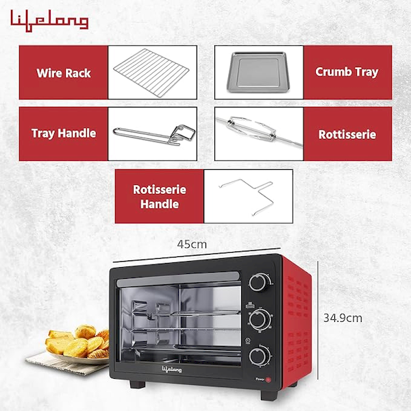 Lifelong 27 Liters Oven Toaster & Griller with Rotisserie and Lamp