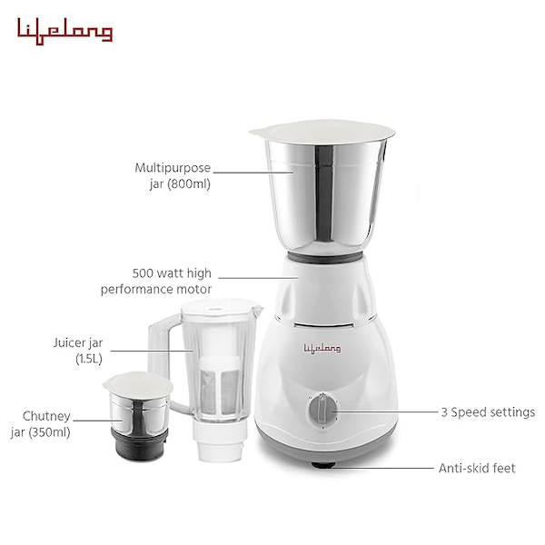 Lifelong 500 W Mixer Grinder 3 Jar