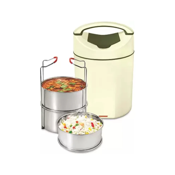 - Design: The tiffin set is double-walled and shock-proof, with a collapsible carry-frame for easy transportation.