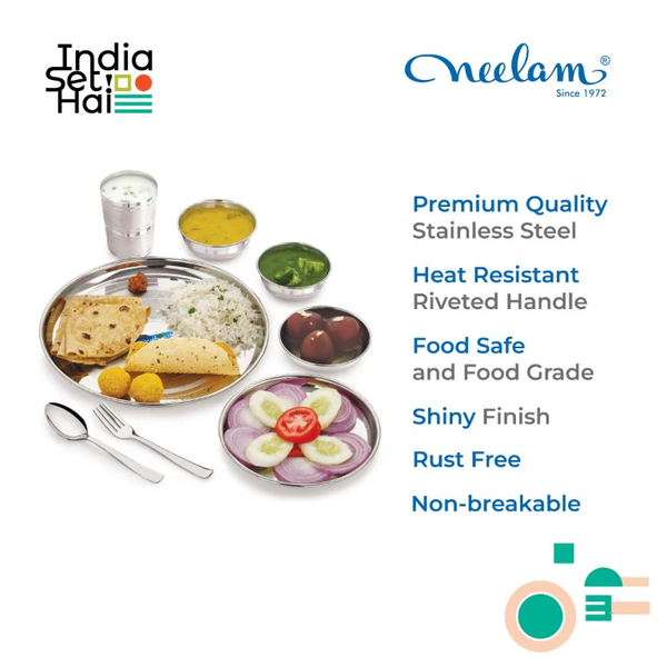 Perfect for single people and small homes, Neelam’s Stainless Steel Bachelor Dinner Set is crafted from high-gauge stainless steel, looks great and is easy to maintain. Make every meal special, as you dine in style every time!