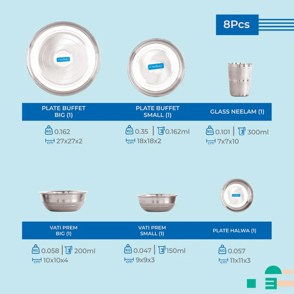 Neelam Bachelor Dine 8 Pcs Stainless Steel Dinner Set (Diamond)