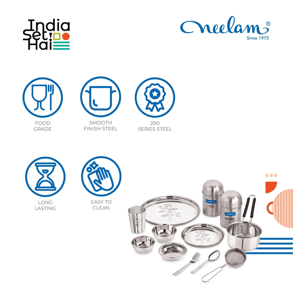 Ideal for bachelors, Neelam’s Bachelor Dine & Cook Set is the perfect stainless steel cookware and dinner set you could ask for. Shop on the Neelam website today!