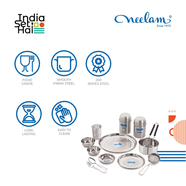 Ideal for bachelors, Neelam’s Bachelor Dine & Cook Set is the perfect stainless steel cookware and dinner set you could ask for. Shop on the Neelam website today!