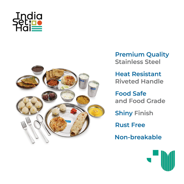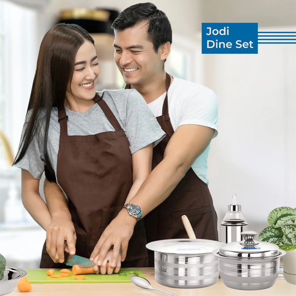 Make dinner times with your significant other, fun and wholesome, with Neelam’s Jodi Dine Set! Crafted from high-gauge stainless steel, it looks great and is easy to maintain. Comprising 16 pieces in total, it is the perfect dinner set for a small family of two!