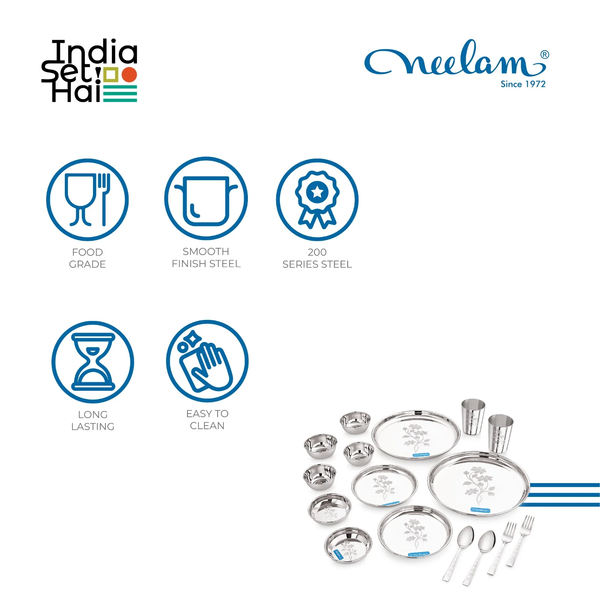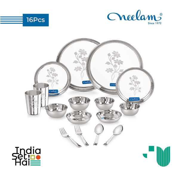 Neelam Jodi Dine 16 Pcs Stainless Steel Dinner Set (Laser Etching)
