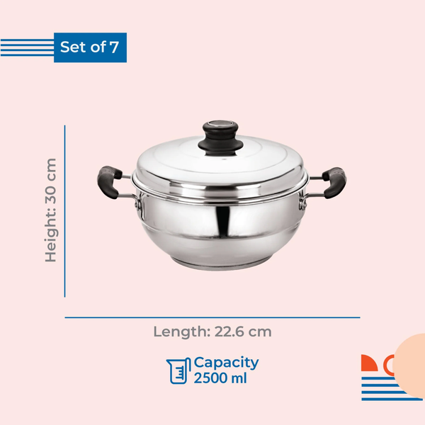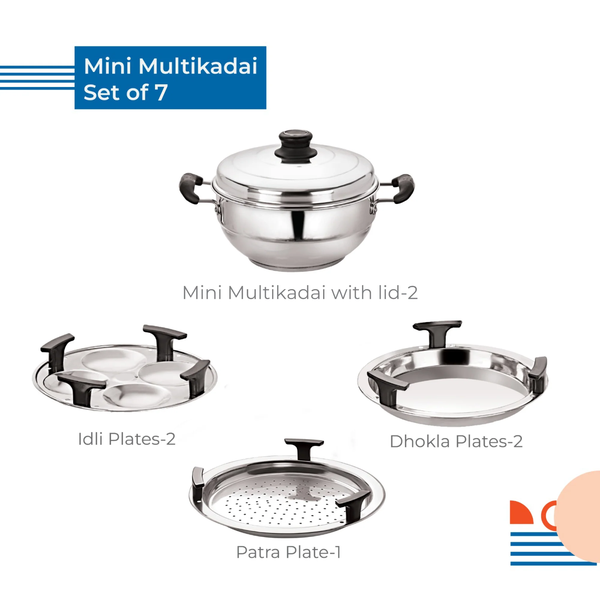 Neelam Stainless Steel Multi Kadai Induction Base (Mini 7 Pcs)