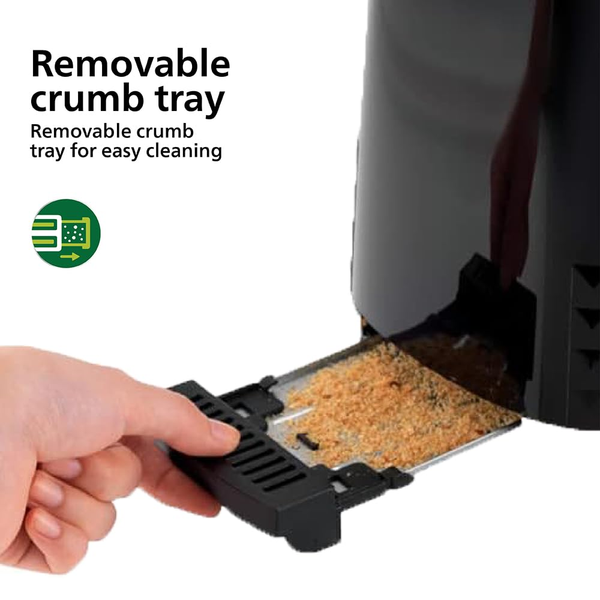 Efficiently prepare eight different types of toast for breakfast as per each family member’s liking using the eight browning modes of the Philips HD2583/90 Daily Collection Toaster. It is built with two large variable slots for different sizes of bread. A cancel option in this toaster allows you to stop operation mid-cycle. Also, the removable crumb tray collects the fallen crumbs in this toaster and lets you clean and maintain it. Furthermore, this toaster lets you reheat your toasted bread as well as defrost frozen bread.