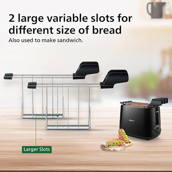 Philips Daily Collection 600-Watt 2 in 1 – Toaster and Sandwichmaker (Black)