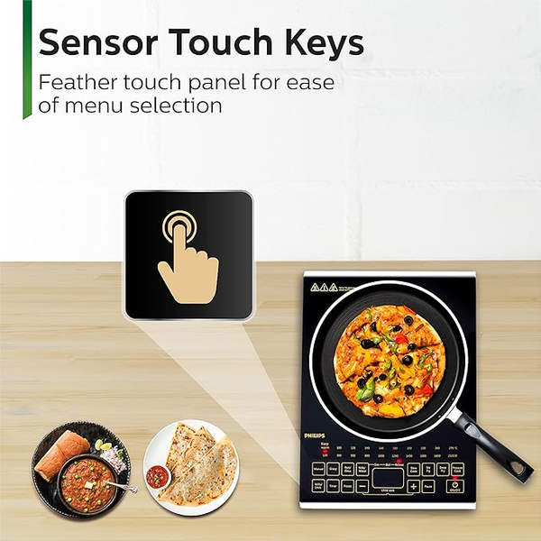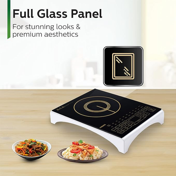 Philips Viva Collection 2100-Watt Glass Induction Cooktop With Sensor Touch & Full Crystal Glass (Black)