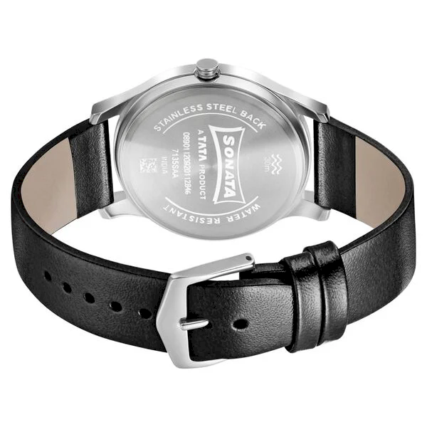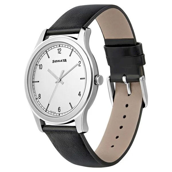 Sonata Quartz Analog Silver Dial Leather Strap Watch for Men