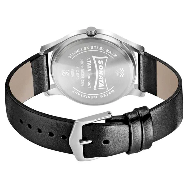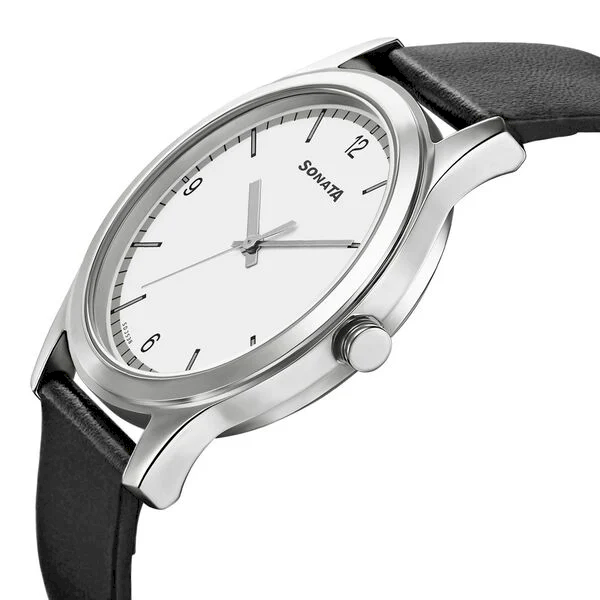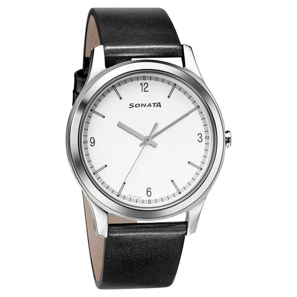 Sonata Quartz Analog White Dial Leather Strap Watch for Men