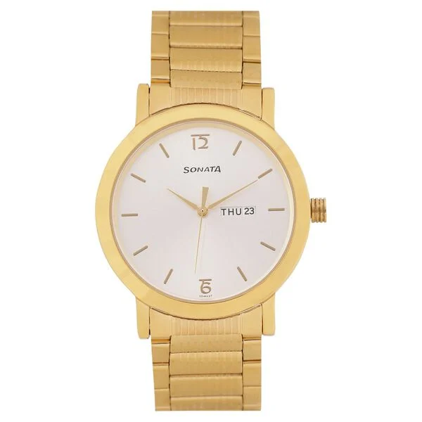 Sonata Quartz Analog with Day and Date White Dial Stainless Steel Strap Watch for Men
