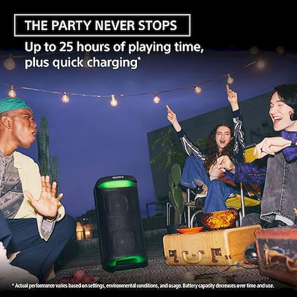 • Splash proof: With an IPX4 splash resistance rating, the XV500 speaker can stand up to splashes and spills, so you can enjoy the party with no worries.