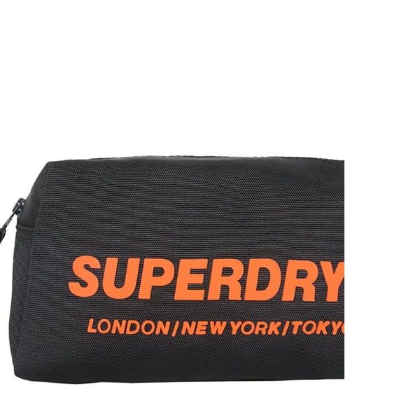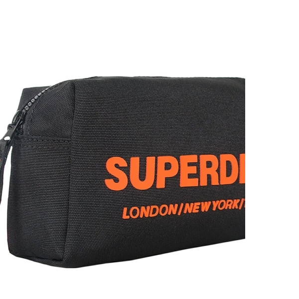 Superdry Vintage Classic wash bag. Keep all of your essentials safe in this wash bag featuring single zipped compartment, one internal pocket and . The wash bag is finished with a large Superdry logo on front small branding on the handle.