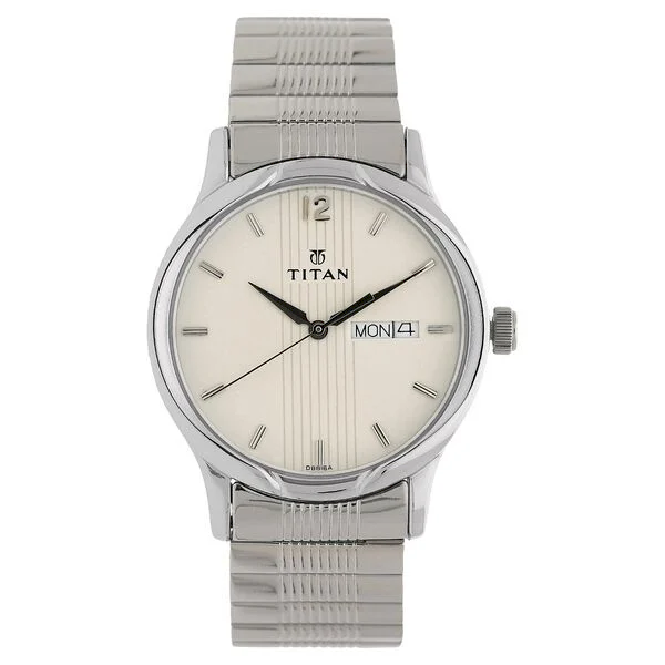 Titan Quartz Analog with Day and Date Silver Dial Stainless Steel Strap Watch for Men
